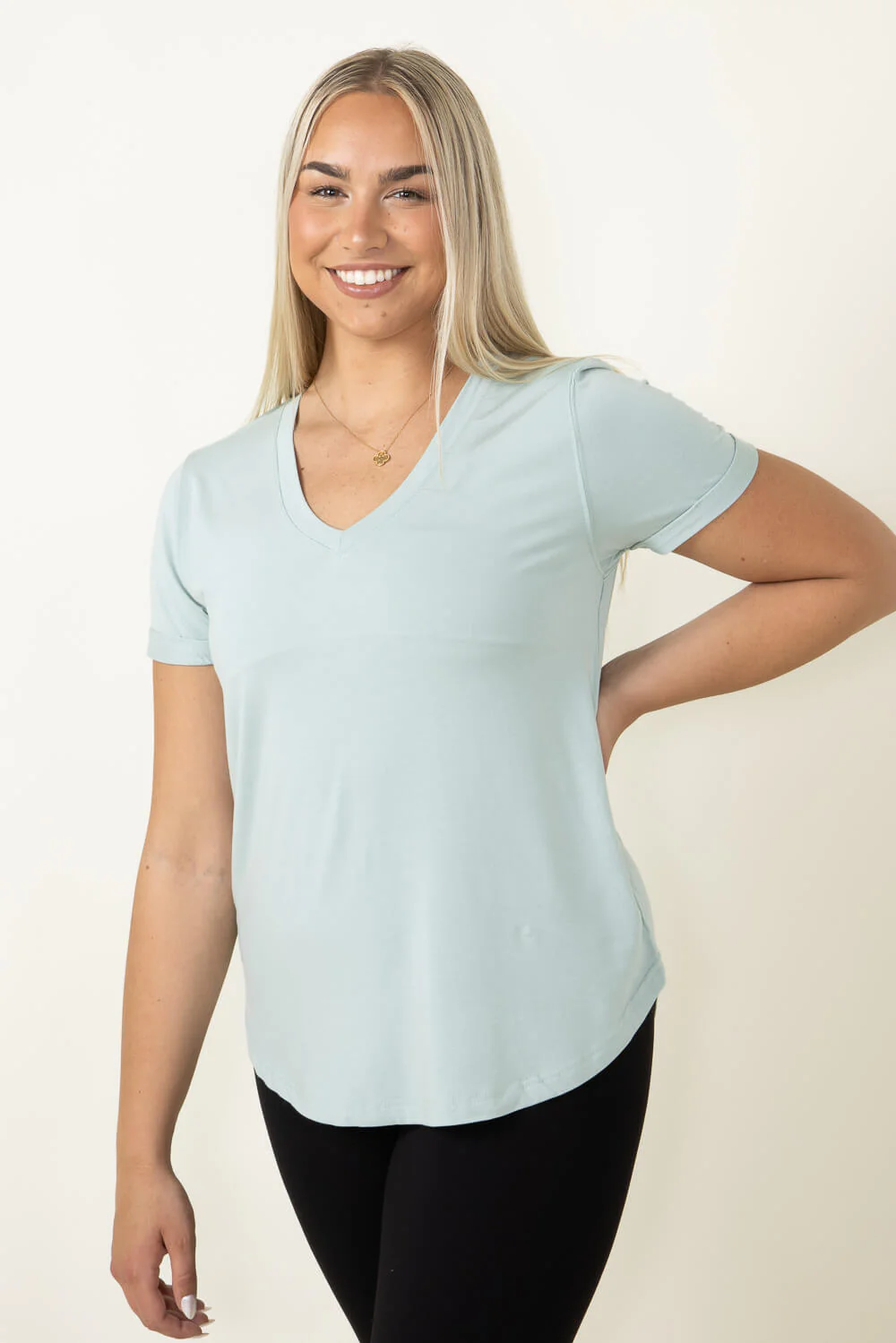 Wear this cute Thread & Supply Recreation T-Shirt for Women in Aqua Grey alone or layered with your fave jackets and cardigans. Featuring a flowy, loose fit, V-neckline, short sleeves and stretchy material, this is both functional and stylish for all of your looks.